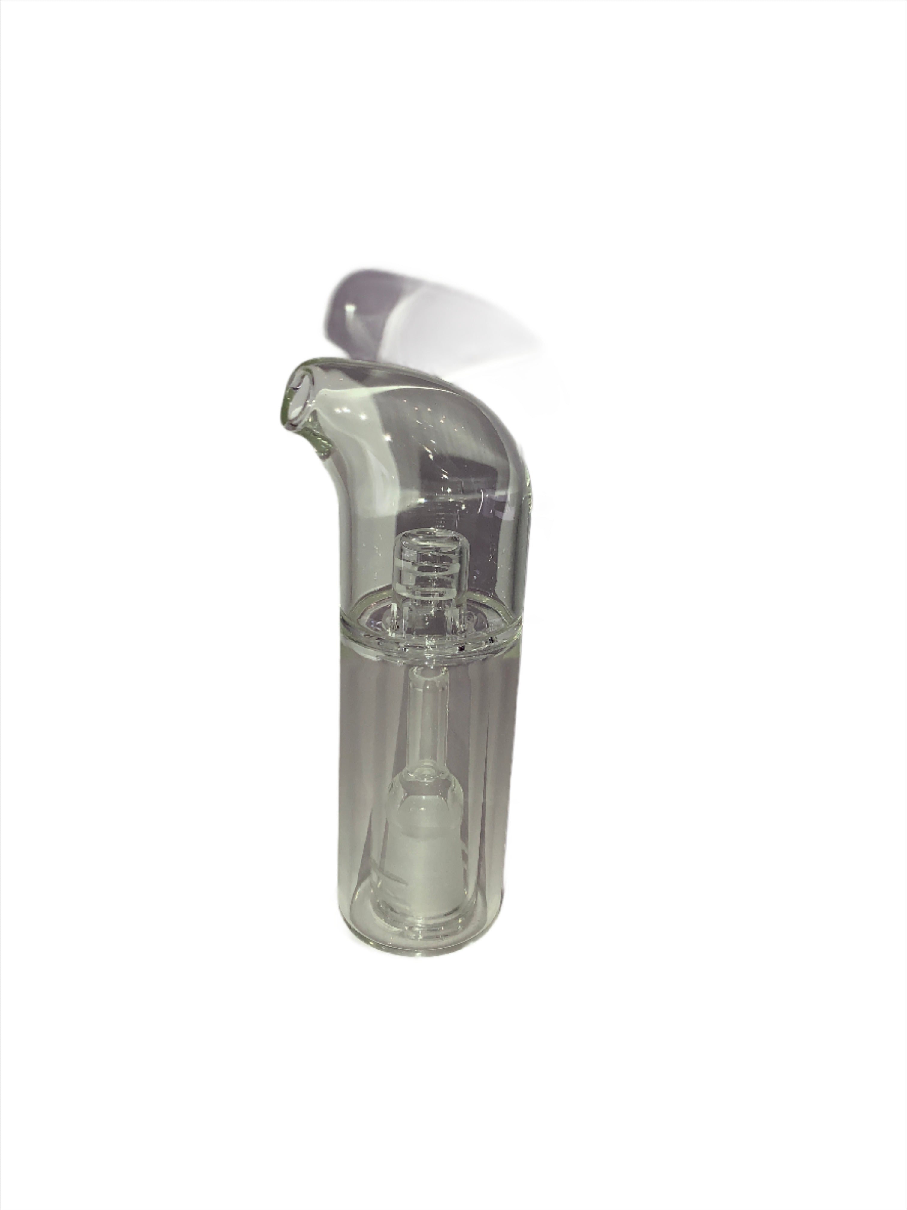 The Hubble Bubble is a top mounted Glass Bubbler developed by Crossing Tech. This bubbler will work with the Saionara Top Air Flow, Saionara PLUS Top Air Flow, and V4 Atomizers if you're using the 14mm Water Pipe Adapter. This is the better choice for all atomizers drawing air from the top and cannot have the airflow obstructed by the green silicone grommet used by the Hydro Tube and Poseidon bubblers.