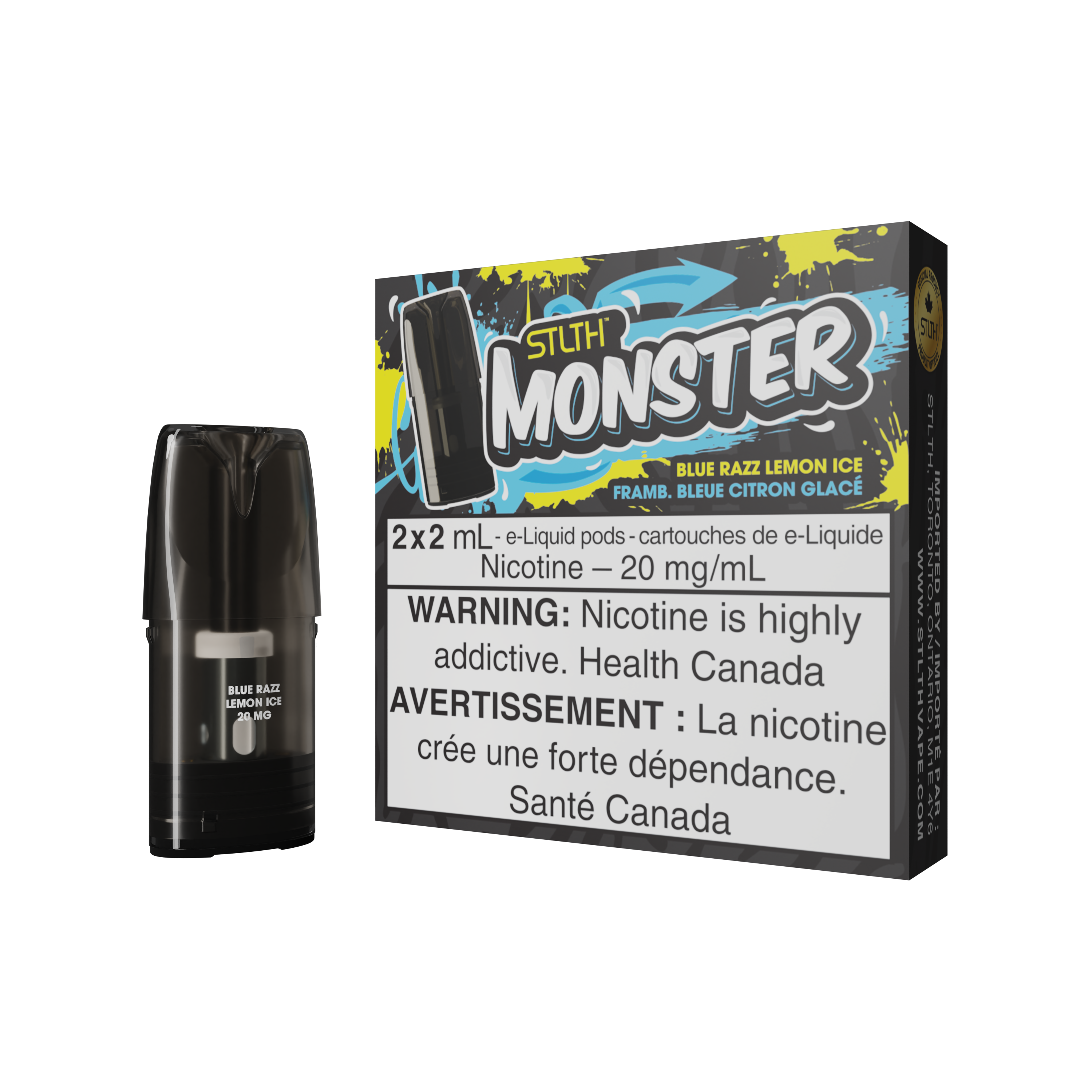 Each STLTH MONSTER POD PACK includes two 2.0 mL pre-filled pod cartridges fitted with pre-installed freshness rods. Simply remove the rod to vape instantly.