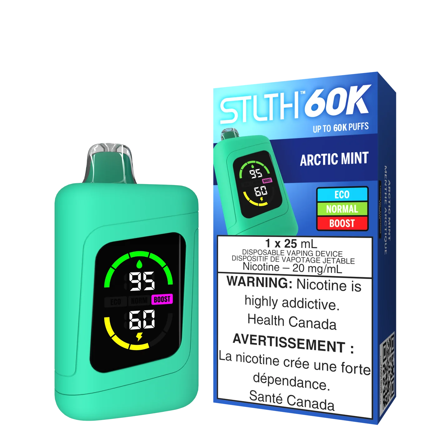 The STLTH 60K is equipped with three customizable modes to suit your preferences. Eco Mode allows for extended use, ensuring you get a long lasting experience. Normal Mode provides a balanced experience that provides a mix of high flavour and longevity. For a more intense experience, Boost Mode enhances both flavour and vapour production, offering a richer, more powerful hit with every draw all with a press of a button. With these modes and the airflow control, you can easily tune your experience, ensuring the perfect puff every time.