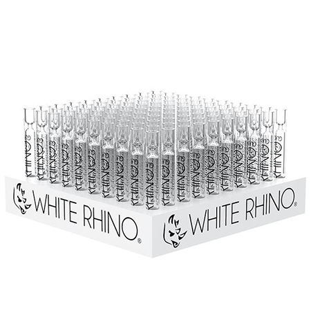 White Rhino Glass Chillum 100 Pack 8.5″ x 8.5″ Display 4.5″ Tall Patent Pending Silicone Cap for load and go